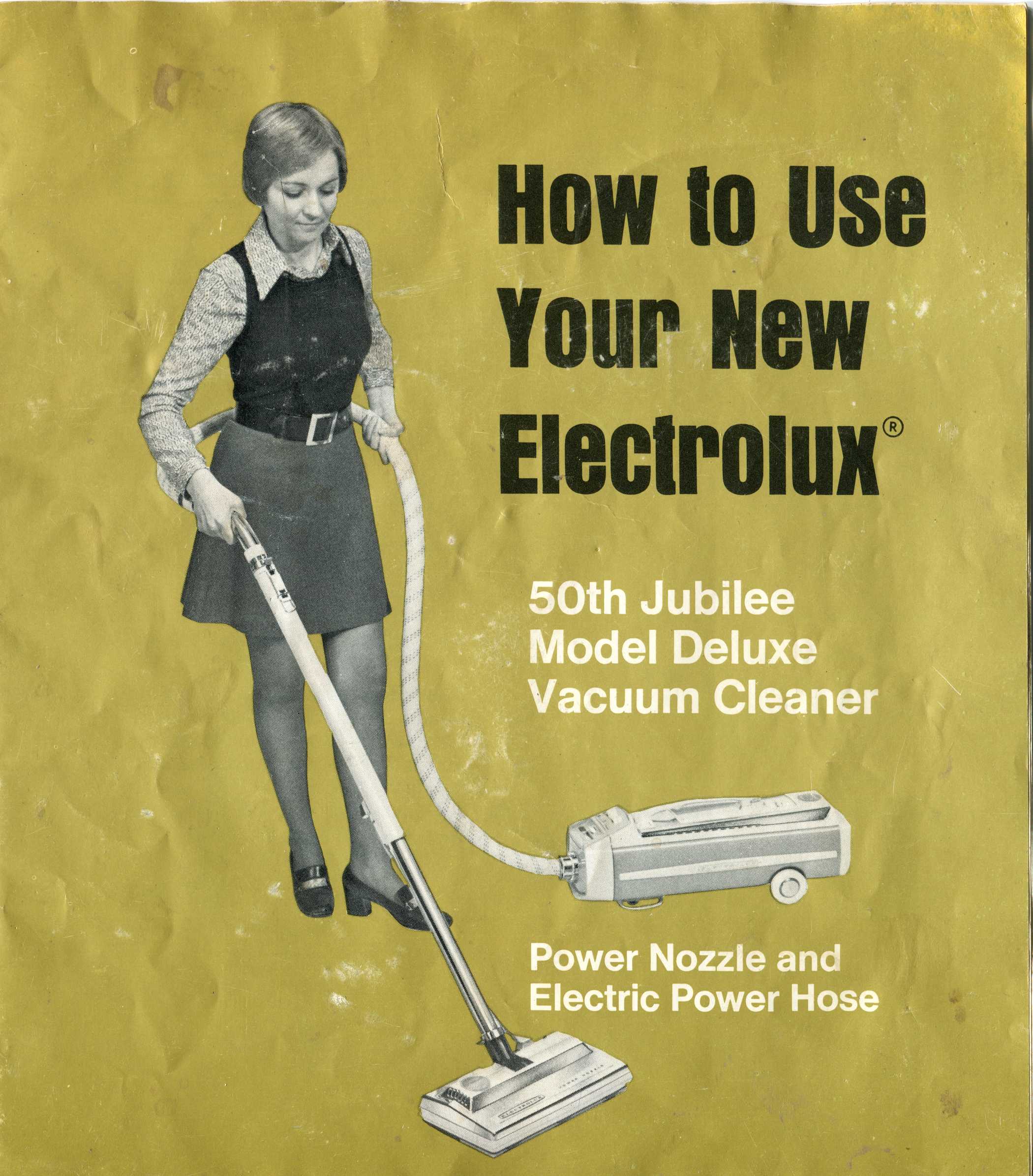 Here is a scan of the instruction manual of the Electrolux 50th Jubilee Vacuum cleaner. Not much else to say! It's interesting to see how those appliances were marketed to women only back in those days